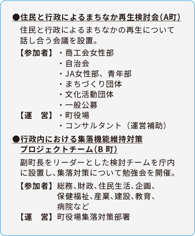 | 行政が中心となったパターン | 住民が中心となったパターン | |